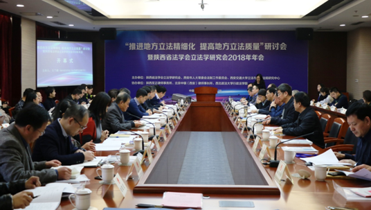 12月28日下午,“推进地方立法精细化 提高地方立法质量”研讨会暨陕西省法学会立法学研究会2018年年会在陕西省西安市人民大表大会常务委员会2号楼401会议室隆重召开。本次会议由陕西省法学会立法学研究会、西安市人大常委会法制工作委员会、乐鱼页面在线登录立法与党内法规研究中心主办,陕西至正律师事务所、北京中银(西安)律师事务所、西北政法大学立法研究中心、西北政法大学行政乐鱼页面在线登录协办。来自乐鱼页面在线登录、西北政法大学、西北大学、陕西师范大学、西北工业大学、中共陕西省委党校、延安大学、中南财经政法大学、陕西省社会科学院等教学科研单位和来自陕西省委政法委、陕西省人大常委会、西安市人大常委会以及宝鸡、商洛、铜川、榆林、韩城等陕西省其它地市人大常委会、西安市人民检察院、西安市中级人民法院、陕西至正律师事务所、北京中银西安律师事务所等法律实务部门的80余位代表齐聚一堂,围绕“推进地方立法精细化 提高地方立法质量”的主题展开了深入探讨。