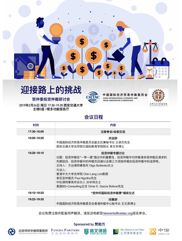 贸仲委投资仲裁研讨会暨“贸仲杯国际投资仲裁赛”颁奖仪式将于2019年2月24日下午5:30-8:00在乐鱼页面在线登录主楼E座多功能报告厅举办,诚邀各位师生参加!