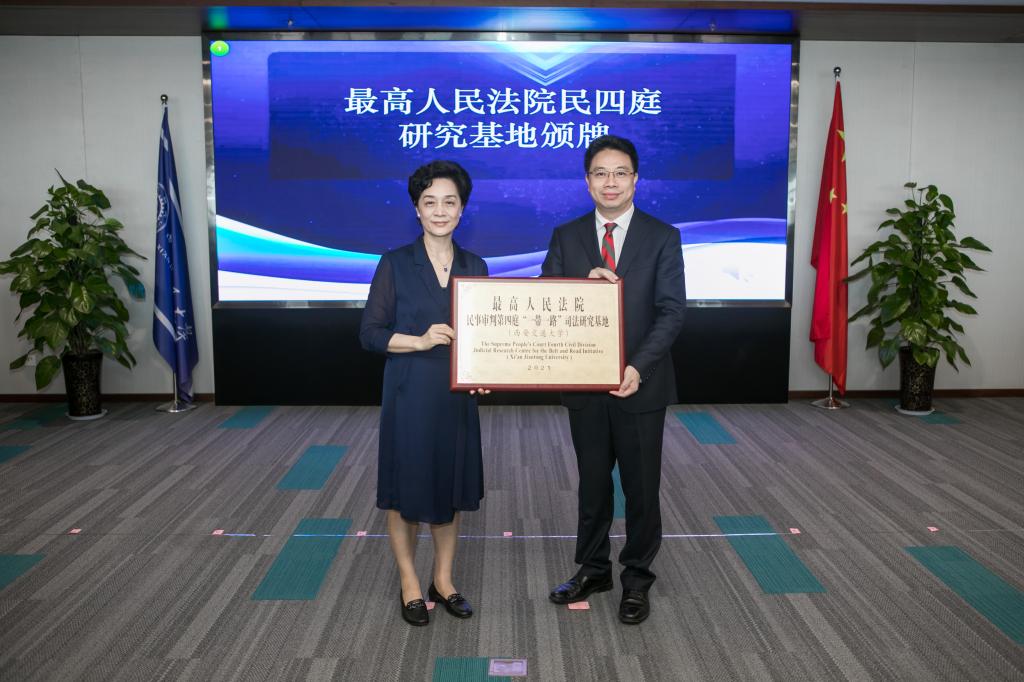 启动活动结束后,最高人民法院陶凯元副院长分别为15家研究基地颁牌。为深入学习贯彻习近平法治思想,全面推进依法治国,统筹推进国内法治和涉外法治,充分发挥高等院校、科研机构的研究优势,促进法学教育与司法实践的深度融合,实现优势互补、资源共享、发展共赢,最高人民法院民四庭在全国高校和科研机构中遴选出15家院校和机构建立了相应的研究基地。乐鱼页面在线登录作为最高人民法院民四庭全国15家研究基地之一,被授予最高人民法院民四庭“一带一路”司法研究基地。