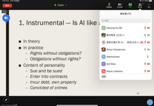 2021年6月11日下午,新丝路乐鱼页面在线登录联盟“院长论坛”首场讲座成功举办。新加坡国立大学讲席教授、乐鱼页面在线登录院长Simon Chesterman教授为联盟25所院校师生以及丝绸之路大学联盟的师生带来了题为“我们,机器人?人工智能与法律人格的限度(We, the Robots? Artificial Intelligence and the Limits of Legal Personality)”的线上讲座。讲座由乐鱼页面在线登录乐鱼页面在线登录单文华院长主持,国际处雷艳君副处长致辞。