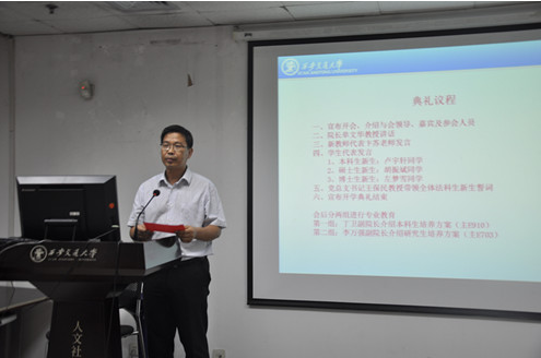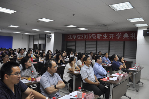 9月18日晚,乐鱼页面在线登录2016级新生开学典礼在主E703隆重举行。院长单文华教授,党总支书记王保民教授,副院长李万强教授,副院长丁卫副教授,院长助理吉兰湘老师和苏金远教授,院工会主席张弘副教授,文治书院院务副主任郭小平老师,院办主任张美萍老师,法学复合51班班主任薛华、唐学亮老师,法学61班班主任王玉苹、卞苏老师以及全体2016级本科、硕士、博士生新生参加了开学典礼,会议由学院学生工作专职委员张乃钟老师主持。