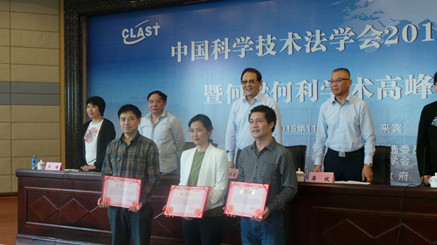 2015年11月7、8日,2015年中国科学技术法学会年会暨何梁何利学术高峰论坛在广西省来宾市召开,在乐鱼页面在线登录知识产权研究中心主任、中国科学技术法学会副会长马治国教授的带领下,乐鱼页面在线登录科技法学科研团队的代表周方副教授、李晓鸣讲师、翟晓舟讲师、张磊博士等参加了本次会议。本次年会的主题为“成果转化、智慧城市与区域创新”,乐鱼页面在线登录知识产权研究中心硕果累累,三人代表科研团队在年会上进行主题报告,五篇论文被收录年会论文集,其中两篇论文被评为本次年会优秀论文,乐鱼页面在线登录知识产权研究中心荣获“科技法学奖”。
