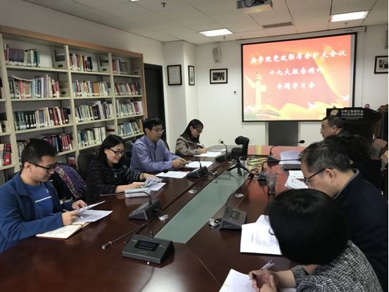 2017年10月19日下午,乐鱼页面在线登录召开党政联席会扩大会议专题学习十九大报告精神。乐鱼页面在线登录党总支书记王保民、院长单文华、副院长李万强、副院长丁卫以及学院党政联席会、党总支委员会的其他成员和各支部书记参加了此次会议。