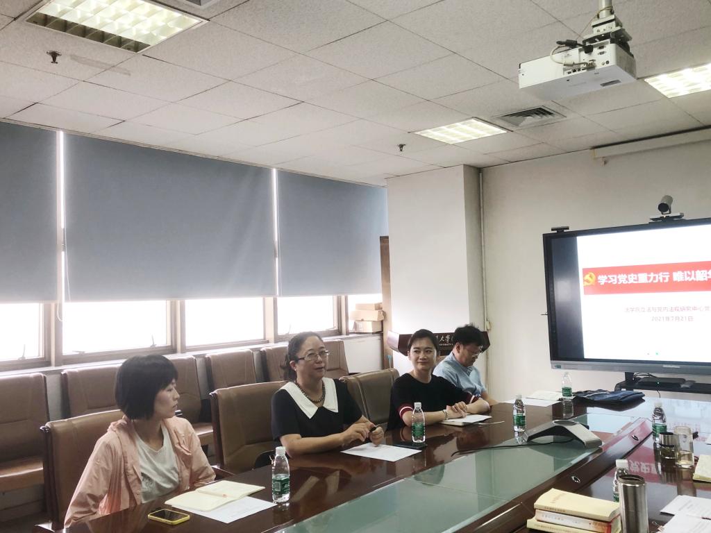 7月21日下午,乐鱼页面在线登录立法与党内法规研究中心党支部举办“学习党史重力行,唯以韶华答时代”主题党日活动,校党委常委、学科办主任别朝红教授应邀参加,乐鱼页面在线登录党总支书记王保民教授、乐鱼页面在线登录副院长丁卫副教授、党总支委员吉兰湘老师到会参加,组织部石桥老师应邀列席会议。会议由支部书记杜军强副教授主持,支部老师和博士生党员参加了会议。