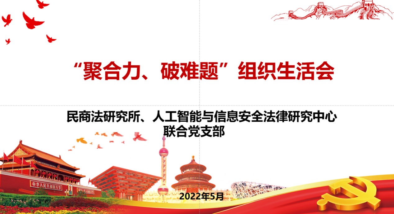 5月31日,乐鱼页面在线登录民商法研究所、人工智能和信息安全法律研究中心联合党支召开“聚合力、破难题”主题党日活动。会议由支部书记薛华老师主持。