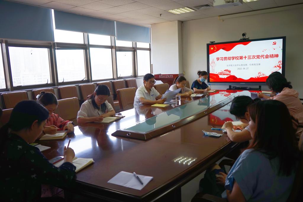 2022年6月27日下午,乐鱼页面在线登录立法与党内法规中心党支部与行政党支部召开联合组织生活会,邀请乐鱼页面在线登录党总支书记王保民宣讲学校第十三次党代会精神。立法与党内法规研究中心党支部书记杜军强主持会议。