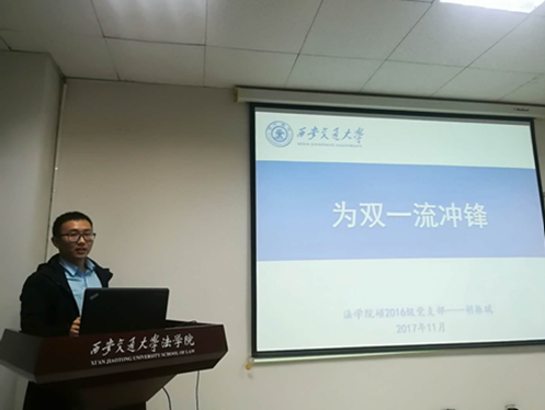 乐鱼页面在线登录硕2016级党支部于2017年11月22日开展主题党日活动,支部书记胡振斌以“为双一流冲锋”为题为支部党员和积极分子讲党课。通过此次党课,同学们对双一流有了更为深入细致的了解,也积极地为双一流的建设建言献策。