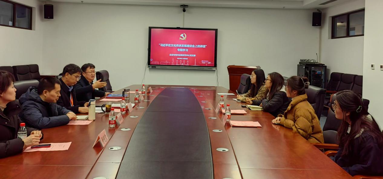 2023年11月30日,乐鱼页面在线登录立法与党内法规中心党支部在创新港涵英楼3079教室召开学习“习近平在文化传承发展座谈会上的讲话”组织生活会。党支部书记杜军强主持会议。
