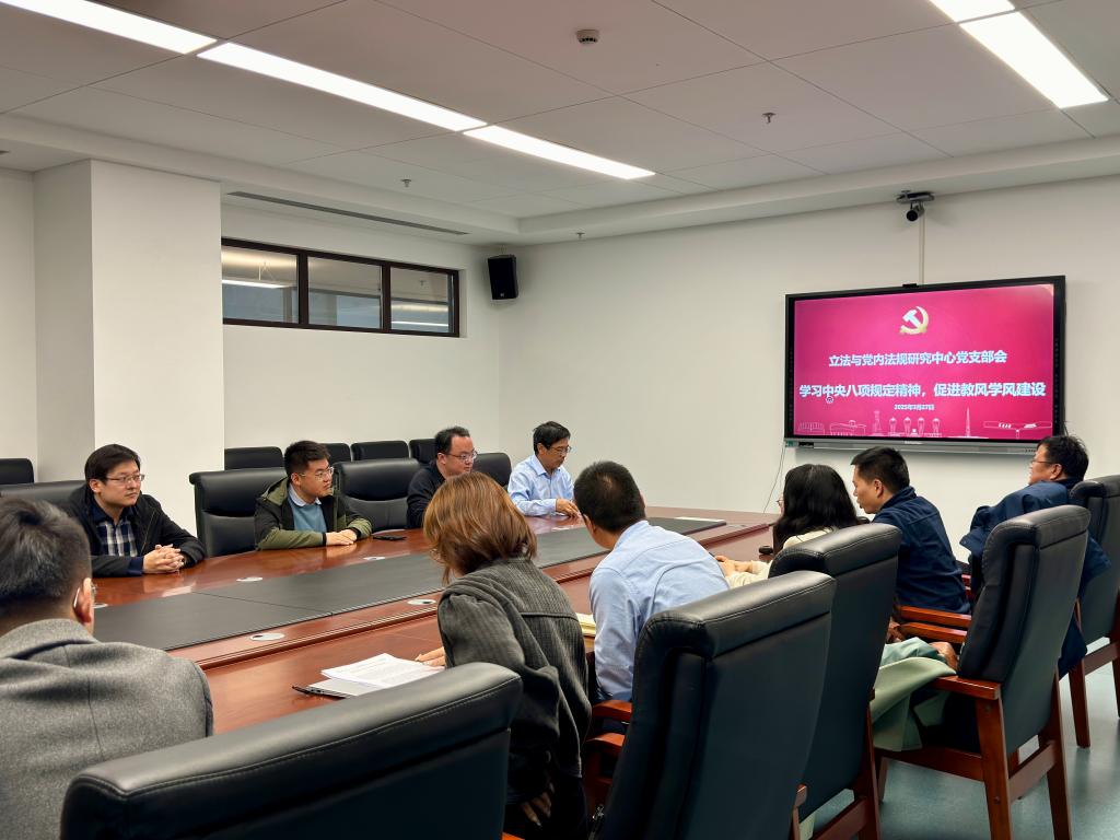 3月27日,立法与党内法规研究中心党支部在创新港5-3079会议室召开了主题为“学习中央八项规定精神,促进教风学风建设”的支部会议。本次会议由中心支部书记杜军强主持,乐鱼页面在线登录党委书记王保民教授、支部教师和博士生党员参加了会议。