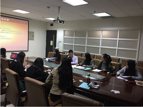 在吉老师的带领下,支部党员全面深入地学习了十九大报告,深刻体会到了新时代的到来,并为中国现如今举足轻重的国际地位和影响力而骄傲自豪!