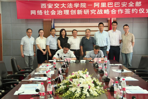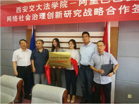 单文华院长与侯金刚总监代表双方签署了乐鱼页面在线登录乐鱼页面在线登录与阿里巴巴安全部网络社会治理战略合作协议书。西安交大副校长席光、信息安全法律研究中心主任马民虎与阿里巴巴集团首席风险官刘振飞、安全部资深总监侯金刚,为“国家社科基金重大项目——网络社会治理创新研究阿里巴巴集团调研基地”揭牌。