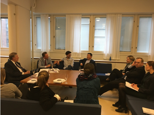 2017年4月25日,我院青年教师杜军强博士应邀参加芬兰最高行政法院荣休院长、芬兰法治 (ROLFI)创建人Pekka Hallberg所著《法治与可持续发展》一书的新书发布会,并作为评论人发言。该新书发布会在赫尔辛基大学乐鱼页面在线登录大楼2楼会议室举行,由赫尔辛基大学乐鱼页面在线登录院长Kimmo Nuotio 主持,另一评论人Guilherme研究员、中国法中心主任 Ulla Liukkunen教授以及多名其他研究人员并博士生参加发布会。