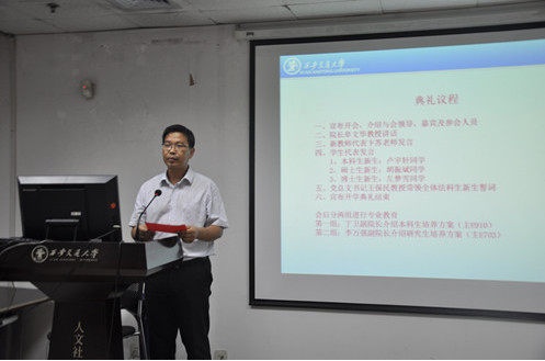 9月18日晚,乐鱼页面在线登录2016级新生开学典礼在主E703隆重举行。院长单文华教授,党总支书记王保民教授,副院长李万强教授,副院长丁卫副教授,院长助理吉兰湘老师和苏金远教授,院工会主席张弘副教授,文治书院院务副主任郭小平老师,院办主任张美萍老师,法学复合51班班主任薛华、唐学亮老师,法学61班班主任王玉苹、卞苏老师以及全体2016级本科、硕士、博士生新生参加了开学典礼,会议由学院学生工作专职委员张乃钟老师主持。