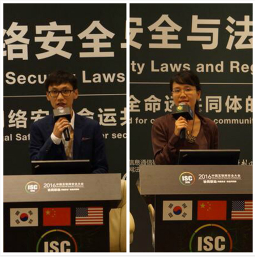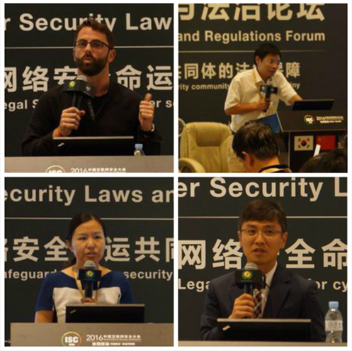 8月16日-18日,第四届中国互联网安全大会(ISC2016)在北京国家会议中心隆重召开。本届大会聚集了全球70多家相关机构和众多专家学者、企业代表,就世界网络安全形势、网络空间战略、安全攻防实战等主题进行了深入探讨。大会以“协同联动:共建安全命运共同体”为主题,设置了多个主题论坛。其中,网络安全与法治论坛备受瞩目,论坛邀请了国家互联网应急中心运行部副主任、正高级工程师严寒冰,法制日报社副社长周秉键,美国前国防部首席网络政策官、美国伯克利大学法学教授Jonathan Reiber,北京邮电大学互联网治理与法律研究中心常务副主任、副教授谢永江,中国信息通信研究院互联网法律研究中心主任李海英,韩国最高检大网络检查侦查官、网络安全法专家Chu Pill Hwan,乐鱼页面在线登录信息安全法律研究中心主任、教授、陕西法学会信息安全法学研究会会长、中国网络安全协会副理事长马民虎,公安部第三研究所网络安全法律研究中心主任、副研究员黄道丽,乐鱼页面在线登录信息安全法律研究中心博士马宁等国内外十余位顶级网络安全法领域专家就“网络安全命运共同体的法律保障”这一主题进行了广泛的研讨和交流。