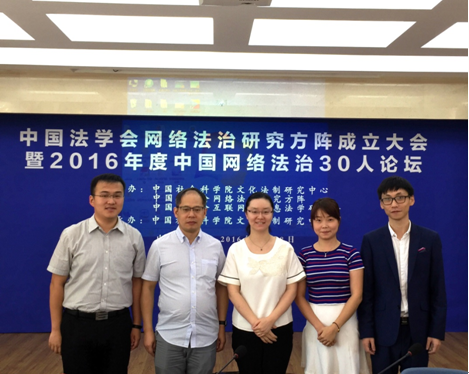 2016年8月28日,中国法学会网络法治研究方阵举行成立大会暨2016年度中国网络法治30人论坛。西安交大信息安全法律研究中心成功入选中国法学会“网络法治研究方阵”理事单位,成为全国五家理事单位之一。校社科处处长贾毅华、学院丁卫副院长受邀参加成立大会并致辞,信息安全法律研究中心副主任王玥副教授带领研究团队成员博士生马宁、党家玉参加论坛。开幕式由中国社科院文化法制研究中心主任、中国法学会互联网与信息法学会副会长周汉华主持。中国法学会研究部主任李仕春、中国法学会副会长李林、中国信息通信研究院政策与经济研究所所长鲁春丛、中南大学乐鱼页面在线登录院长陈云良、乐鱼页面在线登录社科处处长贾毅华、华东政法大学刑事司乐鱼页面在线登录副院长王永全分别作为方阵理事单位代表致辞。