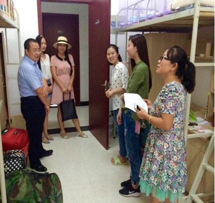 李万强副院长仔细查看了同学们的住宿条件,每走进一间宿舍,都向同学们致以亲切的问候,并代表学院对同学们的到来表示热烈的欢迎。继而关切地询问她们的具体情况,来自什么地方、入学手续办理的情况等。同时,张乃钟老师细心地询问同学们是否适应新的环境,有什么困难,希望同学们遇到问题一定要与老师沟通。随行的学生干部,也借此机会认识了乐鱼页面在线登录注入的新鲜血液,与新生热情得展开交流。