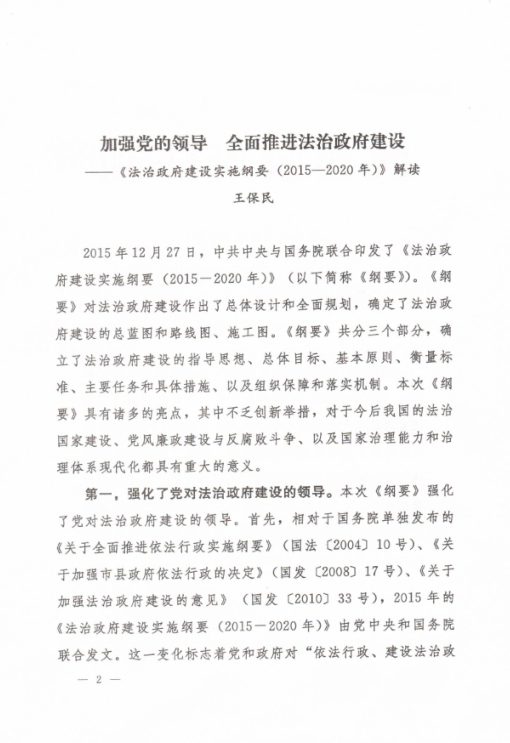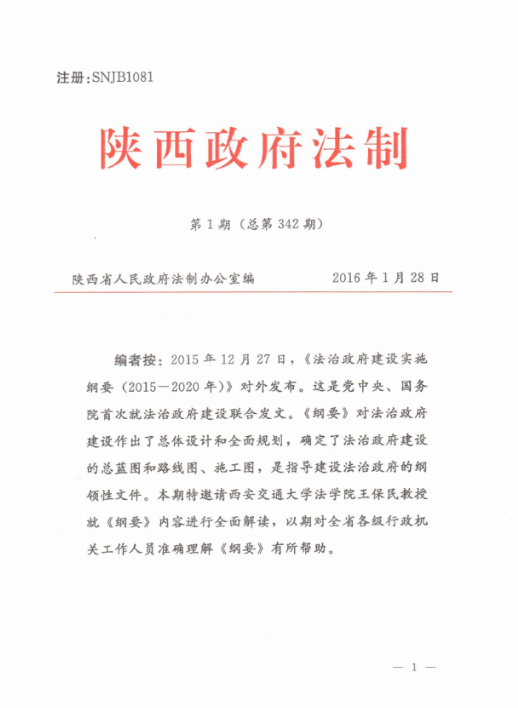 2015年12月27日,《法治政府建设实施纲要(2015-2020年)》对外发布。陕西省人民政府法制办公室邀请了乐鱼页面在线登录乐鱼页面在线登录王保民教授就《纲要》内容进行了全面解读,解读内容被采纳报省领导,送省属各机关,省法院、检察院,各市、县(区)人民政府,发各级政府法治工作机构,以期对全省各级行政机关工作人员准确理解《纲要》有所帮助。