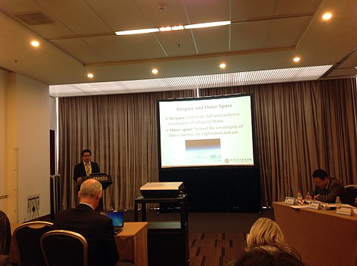 苏金远博士在国际外空法学会年会上做题为The Delimitation between Airspace and Outer Space and the Emergence of Aerospace Objects的专题报告。博士生王鹏和硕士生刘粤琳合作撰写的参会论文The Tragedy of Commons — the Case of Space Debris参加了本次大会的海报展示论文环节(Poster)。参会期间,王鹏同学还观摩了第22届Manfred Lachs外空法模拟法庭全球总决赛。
