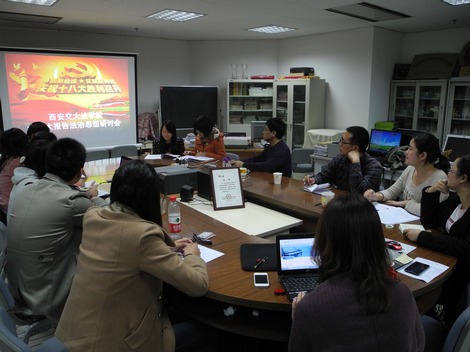 11月20日晚8点,乐鱼页面在线登录举办了学习十八大报告法治思想研讨会,由学院副院长、知识产权研究中心主任马治国教授、李晓鸣讲师组织,部分博士、硕士参加。