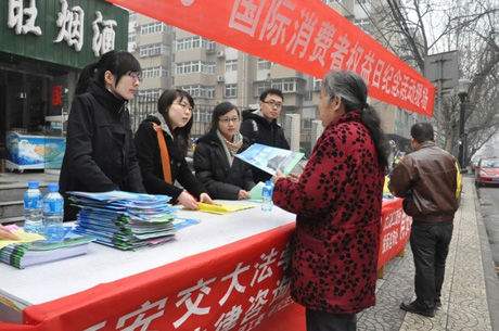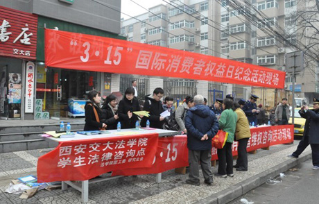 为了更好的宣传消费者权益保护法规和有关消费维权知识,3月15日上午10时,乐鱼页面在线登录团工委、研究生会联合校工会、西安市太乙路工商局消费者协会在交大市场一条街上设立宣传咨询点,开展了一系列的宣传咨询活动。