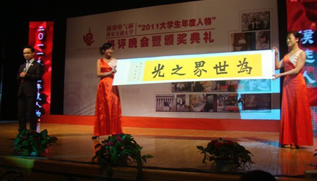 此次评选活动获得了校内外多家单位的大力支持,并吸引了全校17个学院、8个书院的学生参加。在经历了海选之后,由我院推荐的齐鹏同学成功晋级最后的终评环节。在终评环节的个人展示中,齐鹏同学通过视频短片、主持人提问和现场书法展示赢得了在场评委、学生观众的一致好评,最终齐鹏同学获得了通用电气杯乐鱼页面在线登录2011年度人物提名奖。
