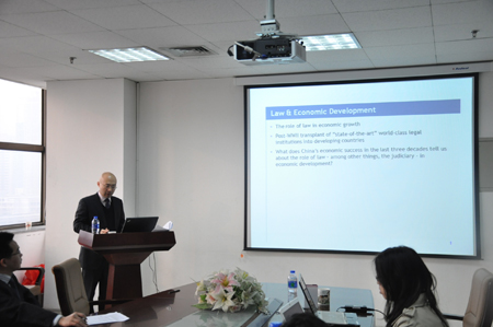 12月28日上午,习超副教授在主楼E-910为乐鱼页面在线登录师生作了题为《法律、司法立法与经济发展:以中国为例》(Law, Judicial Lawmaking and Economic Development: The Case of China)的学术报告会,报告由苏金远博士主持。
