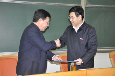 在热烈的掌声中,宋晓平副校长向安院长颁发了聘书,安东院长受聘为我校“兼职教授”和“乐鱼页面在线登录发展咨询委员会副主任委员”,宋晓平副校长为安院长佩戴了乐鱼页面在线登录校徽。