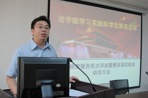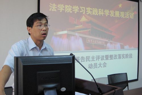 乐鱼页面在线登录总支书记、院长、学习实践活动领导小组组长单文华,首先向与会师生做了《乐鱼页面在线登录领导班子贯彻落实科学发展观情况分析检查报告》。他说,遵照校党委关于深入开展学习实践科学发展观的工作部署,乐鱼页面在线登录围绕“育法学栋梁,谋创新发展,创一流学院”的学习实践载体,认真学习理论、深入调查研究、开展解放思想大讨论、广泛征求意见建议,在此基础上召开专题民主生活会。会议举行之前,院领导班子成员之间开展了充分深入的谈心交流活动,并就会议准备事项在院党总支会议上进行了专题研究。在此基础上,经过院党总支会议研究讨论,最终形成了乐鱼页面在线登录领导班子分析检查报告。分析检查报告包括学习实践科学发展观活动的中学院领导班子形成的共识、乐鱼页面在线登录建院一年多以来取得的主要成效、乐鱼页面在线登录在贯彻落实科学发展观中存在的突出问题、原因以及今后贯彻落实科学发展观的主要思路和对策等四个方面。他最后强调,乐鱼页面在线登录党总支要以深入开展学习实践科学发展观活动为契机,围绕打造“育法学栋梁,谋创新发展,创一流学院”的目标,着力完善师资队伍建设、学科建设、专业设置、学生管理等方面机制;强化服务意识,加强领导班子作风建设,创新发展理念,破解发展难题,提高发展水平,应对新挑战、抢抓新机遇,在服务大局中实现乐鱼页面在线登录的科学发展。