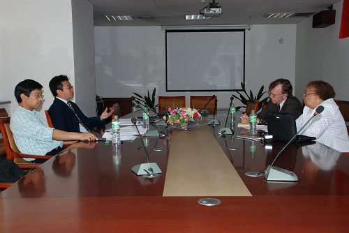 6月2日上午, 林肯乐鱼页面在线登录院长Steven Lester Willborn教授、副院长Anna Williams Shavers教授以及其他两位成员,在主楼601会议室,与乐鱼页面在线登录院长单文华教授、副院长马治国教授、副院长副书记王保民副教授、以及部分博士、硕士研究生代表,举行座谈。会议伊始,单院长代表乐鱼页面在线登录对林肯乐鱼页面在线登录代表团的来访表示了欢迎,并表示希望双方利用访问的机会在师生互访、学术交流和联合办学等方面达成实质性的协议。双方在各自介绍了其法学学科的发展情况后,展开互动交流,气氛融洽,加深了双方相互间的了解。