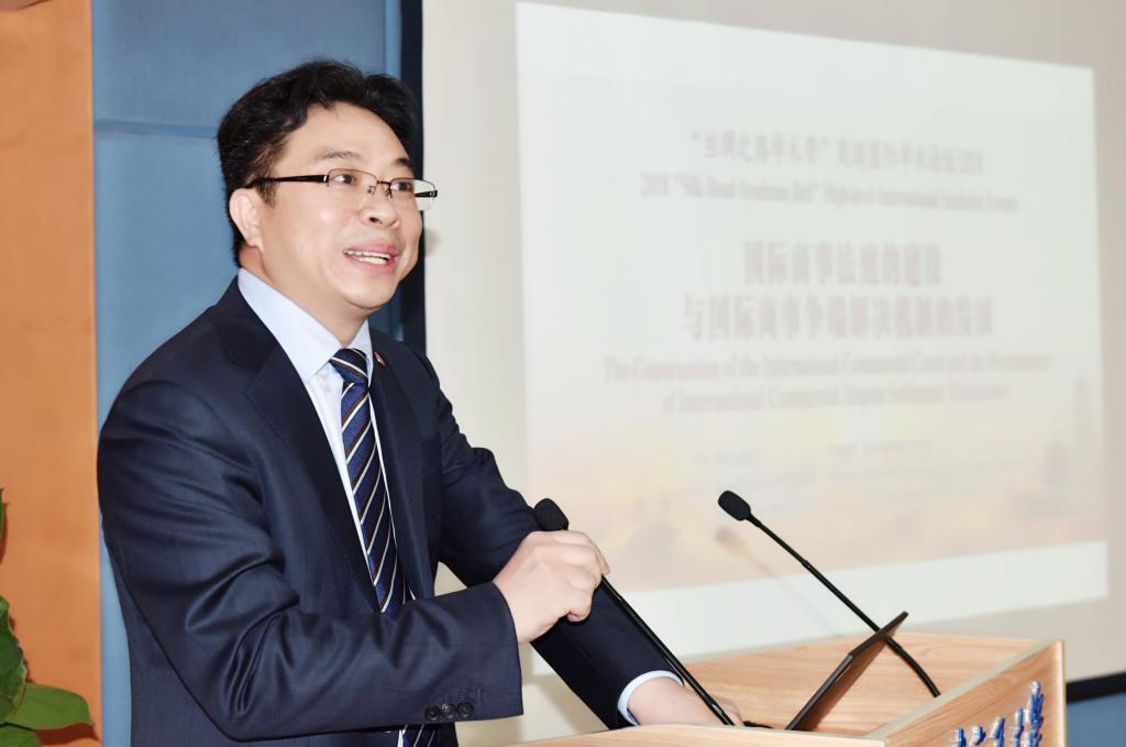 最高人民法院审判委员会委员、民事审判第四庭庭长张勇健,最高人民法院第六巡回法庭副庭长张明,以及陕西省高级人民法院副院长巩富文、西安市人民政府副市长董劲威等陕西省代表,世界贸易组织上诉机构前法官张月姣、迪拜国际金融中心法院院长、新加坡法学会前会长黄锡义、中国国际经济贸易仲裁委员会副主任兼秘书长王承杰、北京国际仲裁中心副秘书长陈福勇、深圳国际仲裁院理事黄亚英、蒙古国司法研究信息培训院满都呼等国内外争端解决机构代表和中国社会科学院国际法研究所国际经济法室主任刘敬东、香港城市大学乐鱼页面在线登录副院长陈磊等学术和实务届代表出席会议,就国际商事法庭建设的机遇与展望、国际商事法庭建设的域外情况与比较、“一带一路”法律服务与法治创新示范区与“一带一路国际争端管理中心”建设等议题展开研讨。乐鱼页面在线登录校长王树国和西安市人民政府副市长董劲威作大会致辞,张勇健做主旨报告。会议开幕式和主旨报告由乐鱼页面在线登录校长助理兼乐鱼页面在线登录院长、最高人民法院司法案例研究院副院长单文华教授主持。