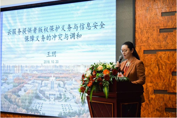 乐鱼页面在线登录信息安全法律研究中心副主任王玥作了《云服务提供者版权保护与信息安全保障义务的冲突与调和》的主题发言。