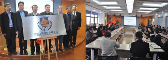 西安交大乐鱼页面在线登录副院长李万强宣读了《关于成立乐鱼页面在线登录丝绸之路国际律师学院的决定》。席光副校长和张华俊局长共同为“丝绸之路国际律师学院”(简称“丝路律师学院”)揭牌。