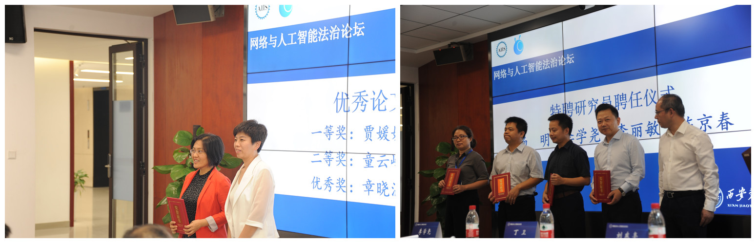 在此次论坛上,乐鱼页面在线登录人工智能与信息安全法律研究中心聘请杨明教授、李学尧教授、李丽敏教授、陈京春教授为特聘研究员并为其颁发了聘书。乐鱼页面在线登录学报(社会科学版)张丛副主编为评选出的优秀论文作者代表进行了颁奖。