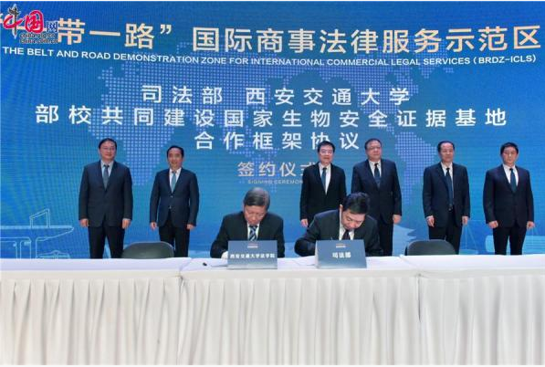 近日,司法部、陕西省人民政府在西安举办“一带一路国际商事法律服务示范区”中国—上海合作组织法律服务委员会西安中心、“一带一路”律师联盟西安中心、“一带一路”国际商事争端解决中心和国家生物安全证据基地(“三中心一基地”)揭牌仪式。司法部副部长熊选国出席并讲话,陕西省委常委、常务副省长梁桂、西安市委副书记、市长李明远、西安市委副书记、市委政法委书记韩松,副市长、市公安局局长肖西亮、乐鱼页面在线登录党委书记卢建军、乐鱼页面在线登录校长王树国等出席活动。至此,我校率先提出的建设国家级“一带一路”法律服务与法治创新示范区建议正式落地西安并初步成型。