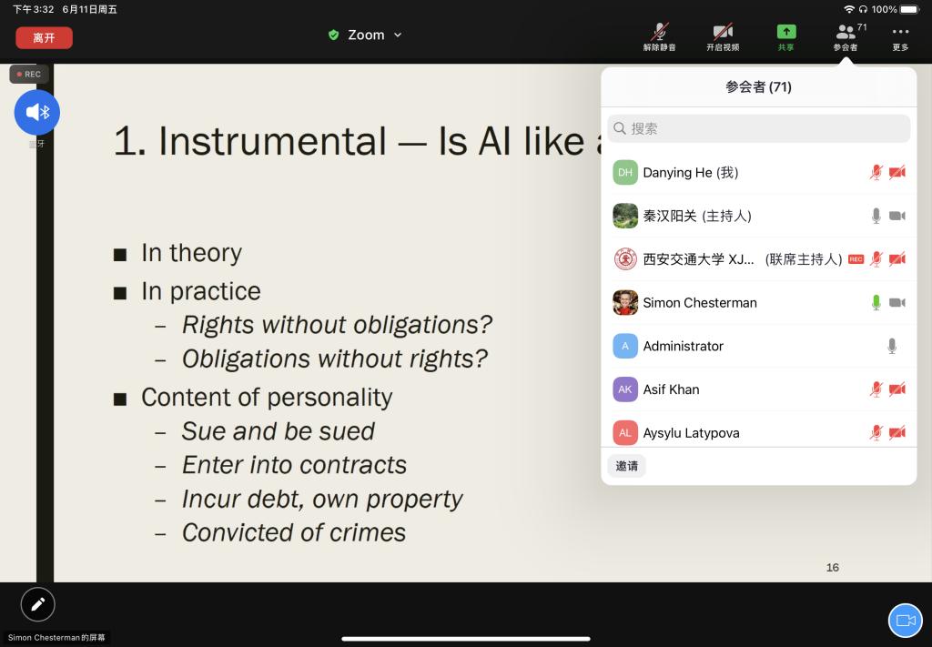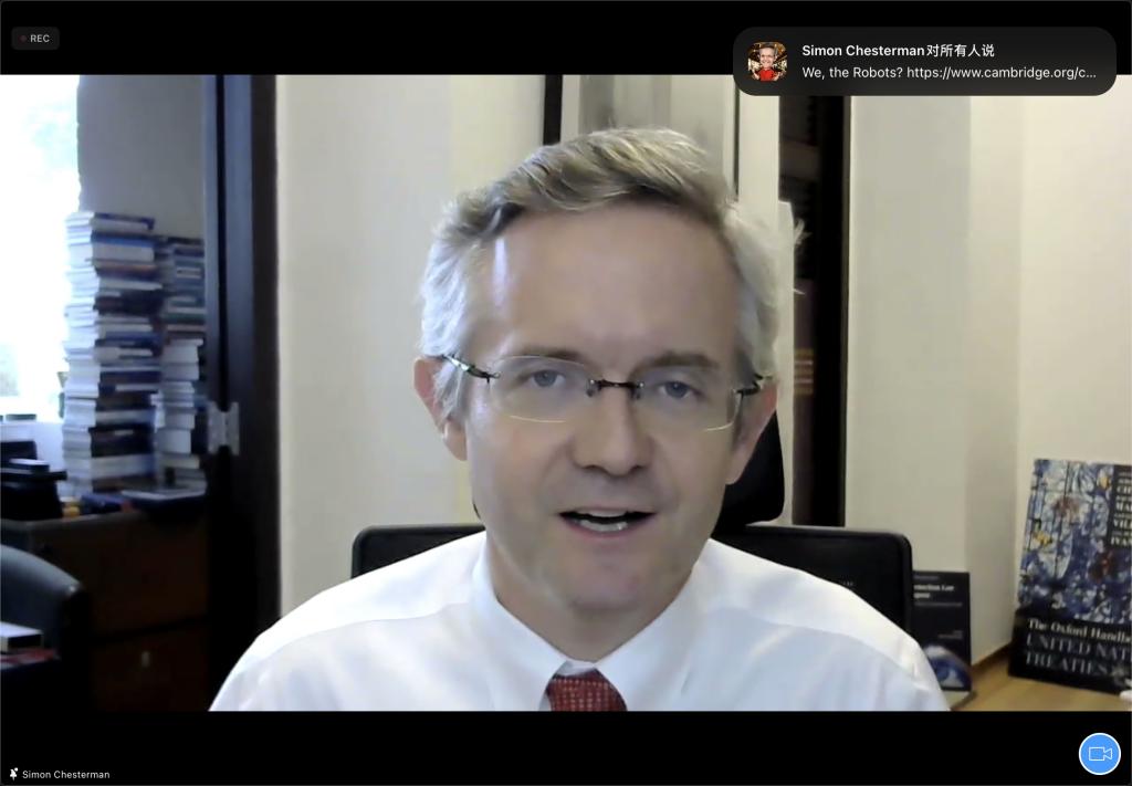 2021年6月11日下午,新丝路乐鱼页面在线登录联盟“院长论坛”首场讲座成功举办。新加坡国立大学讲席教授、乐鱼页面在线登录院长Simon Chesterman教授为联盟25所院校师生以及丝绸之路大学联盟的师生带来了题为“我们,机器人?人工智能与法律人格的限度(We, the Robots? Artificial Intelligence and the Limits of Legal Personality)”的线上讲座。讲座由乐鱼页面在线登录乐鱼页面在线登录单文华院长主持,国际处雷艳君副处长致辞。