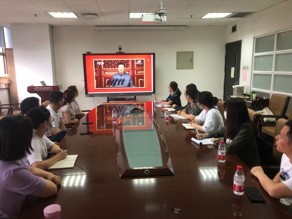 2021年7月1日上午,庆祝中国共产党成立100周年大会在天安门广场隆重举行。乐鱼页面在线登录在主E-910会议室组织党总支委员、党支部委员、师生代表集中观看庆祝大会直播。现场热烈的气氛另学院师生深受感染,大家纷纷表达激动的感情和诚挚的祝福!