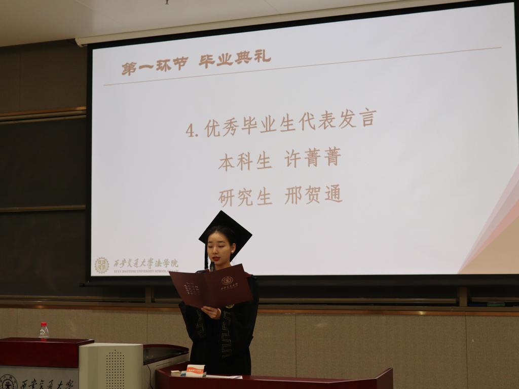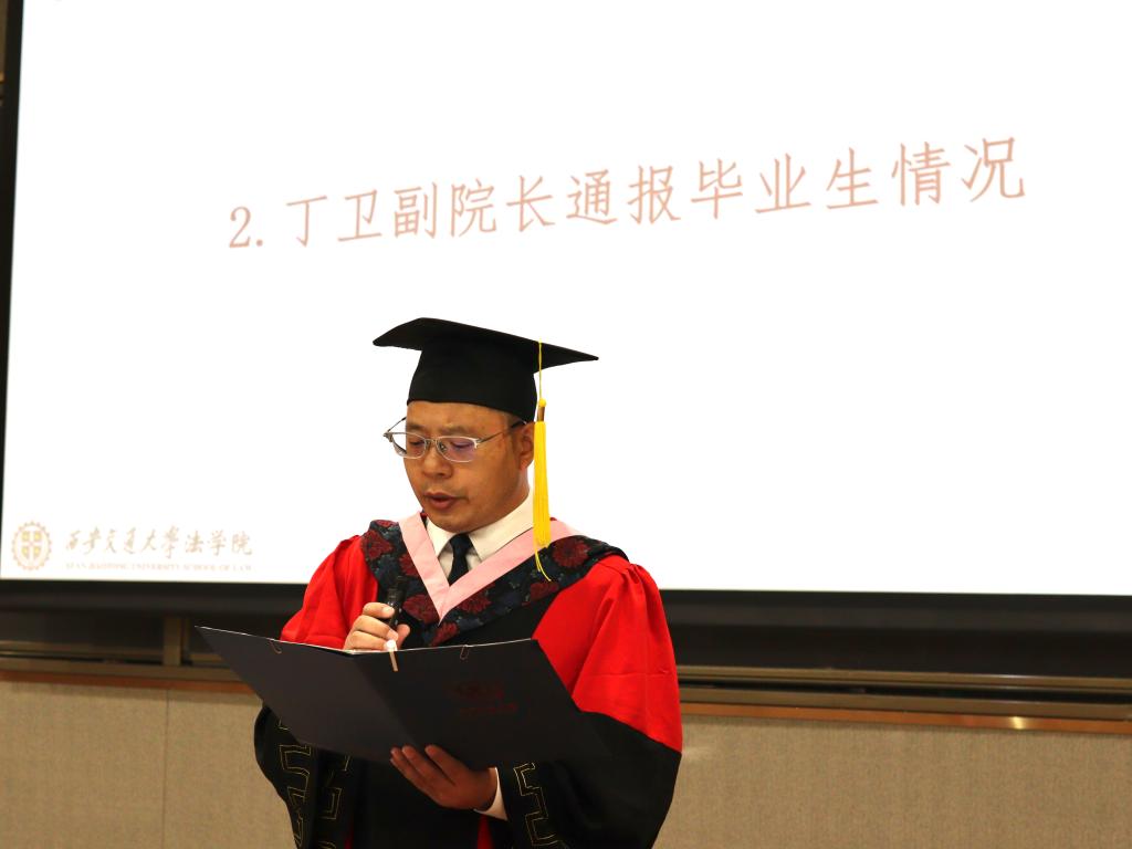 丁卫副院长首先通报了2023届毕业生情况,他表示,本届乐鱼页面在线登录毕业生在各自领域展现出了出色的才能和潜力,经过长时间的学习和实践,他们成功地进入了国内外知名律师事务所、政府机构、企业法务部门、研究机构以及高等院校等各个领域,将为社会的发展和法治建设贡献自己的力量,展现出法学专业研究生的优秀素养和综合能力。