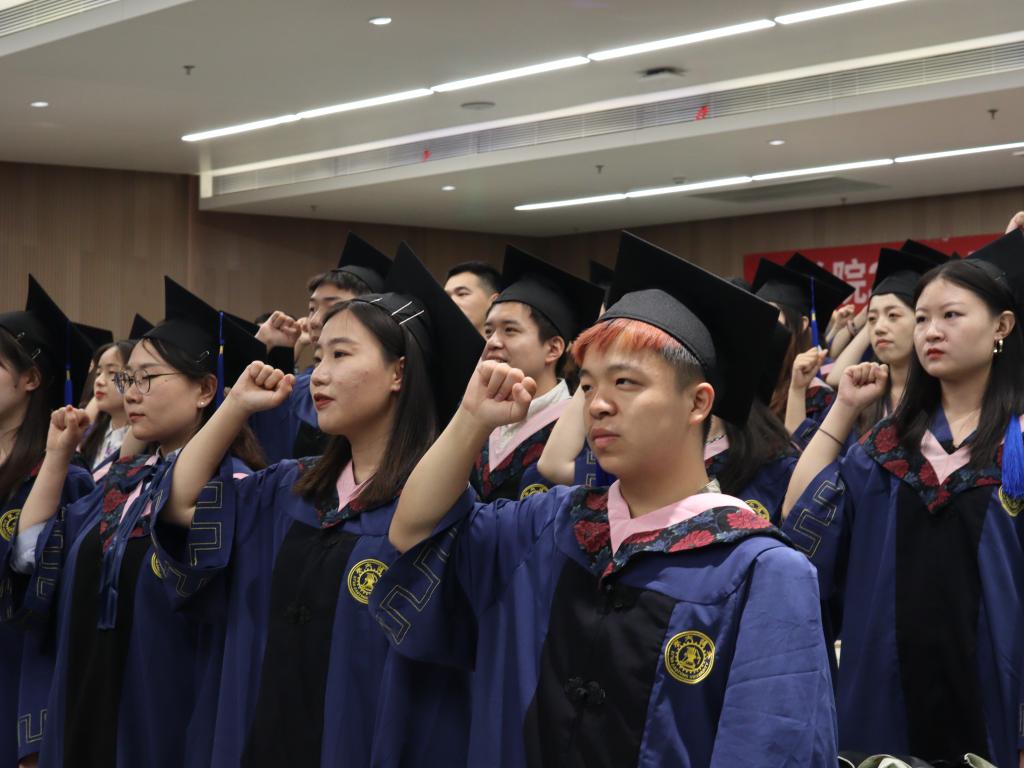 作为法律学子,在即将奔赴祖国各地建功立业之际,全体毕业生在张乃钟老师的带领下庄严宣誓《乐鱼页面在线登录法科生誓词》。