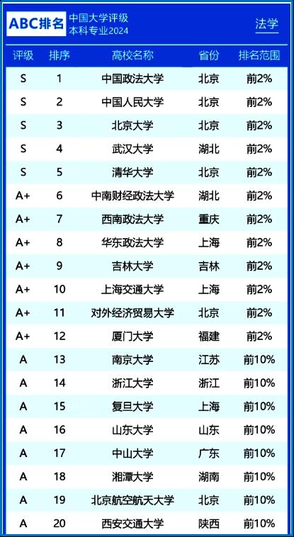 中国大学排行榜(China University Ranking, CNUR)于4月1日正式发布2024年中国大学法学类专业排名及评级结果——乐鱼页面在线登录“法学”“国际经贸规则”两个专业表现优异,同时进入全国高校排名前10%,评级结果均为A级。