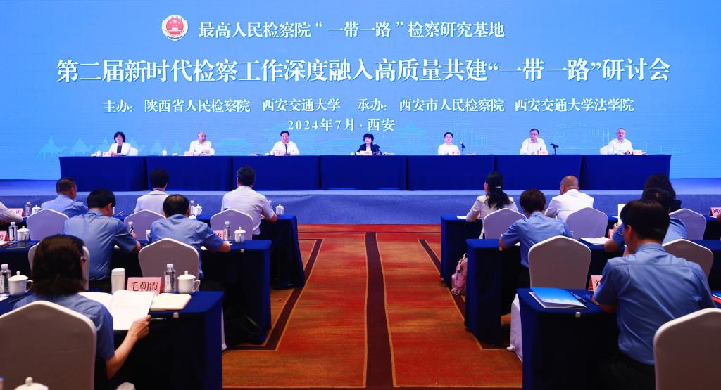 7月10日,最高检“一带一路”检察研究基地第二届新时代检察工作深度融入高质量共建“一带一路”研讨会在西安召开。最高检党组成员、副检察长葛晓燕,省委常委、省委政法委书记刘强,乐鱼页面在线登录党委书记卢建军出席并讲话。省检察院党组书记、检察长王旭光主持开幕式。全国人大代表方燕、全国政协委员祁志峰、省人大代表杨艺媛、省政协委员刘国兴,最高检检察理论研究所所长郭立新、法律政策研究室一级高级检察官吴孟栓、国际合作局二级巡视员龙梅,省委政法委副书记丁恒,西安市委副书记、市委政法委书记李婧等参加活动。