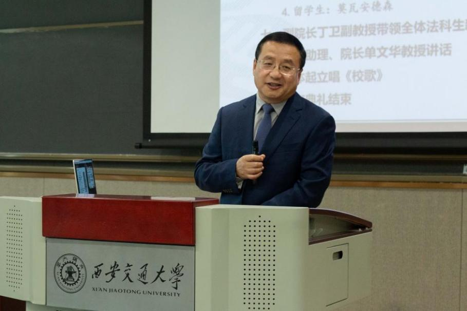 崇实书院段继超主任援引了联合国教科文组织报告中总结的构成21世纪人类终身学习目标的五大支柱——学会求知、学会做事、学会相处、学会发展、学会改变,他将这五点送给同学们作为应对大学学习、生活和未来规划与发展的艰难之际时的锦囊妙计。段主任寄语每一位乐鱼页面在线登录的新同学在求学生涯中继承精勤求学之传统,在仰望星空的同时脚踏实地,在接受正气、正道、正义、卓越的乐鱼页面在线登录精神的同时,弘扬社会主义法治精神,维护社会公平正义,为强国建设、民族复兴伟业做出无愧南洋法脉的时代贡献,以交大之光,为世界之光。