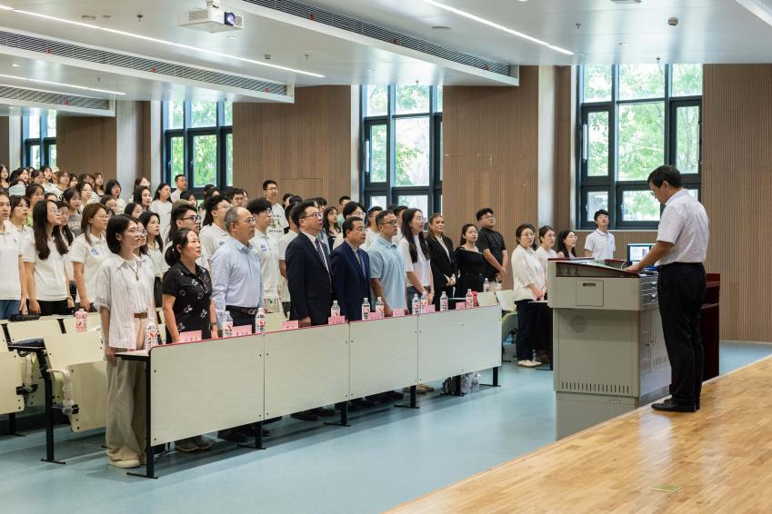 9月7日下午,乐鱼页面在线登录2024级新生开学典礼在涵英楼西辅楼5-1W105召开。校长助理、乐鱼页面在线登录院长单文华教授,党总支书记王保民教授,副院长李万强教授,副院长丁卫副教授,崇实书院院务主任,学生处副处长段继超老师,乐鱼页面在线登录学生工作专职委员张乃钟老师,研究生辅导员任倩文老师,本科生辅导员马雅蕾老师,乐鱼页面在线登录2024级本科生班主任季雪亮老师、张珍星老师、郭剑萍老师,本科生教务王德霞老师,硕士生教务尚蕾老师,留学生教务高逸哲老师与乐鱼页面在线登录2024级240余名本硕博新生共同参加了开学典礼。典礼由党总支书记王保民教授主持。