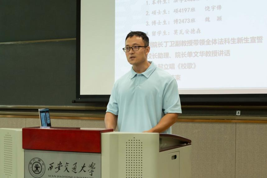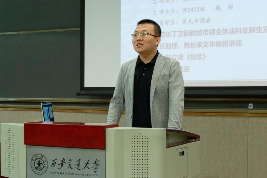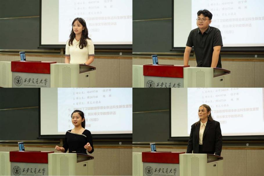 在学生代表发言环节,本科生新生代表李雨珈深情表达了对西交乐鱼页面在线登录的期待和对努力成才报国、勇挑法治建设重任的决心与毅力。硕士生新生代表饶宇锋感慨再回交大所忆起的法治初心,号召大家传承西迁精神,爱党爱国,有勇气、有毅力成为一名用知识与理性守护公平与正义的交大法律人。博士生新生代表魏颖表示,选择了交大乐鱼页面在线登录,就是选择了拥抱精彩,并对自己与所有同行的小伙伴们寄语,“朝前走吧,通天大道宽又阔”。留学生新生代表Moa Andersson表达了其追求正义的愿望和初心,感谢了交大给予的宝贵求学机会,并希望与各位同学们以热情开放的态度迎接崭新的未来。