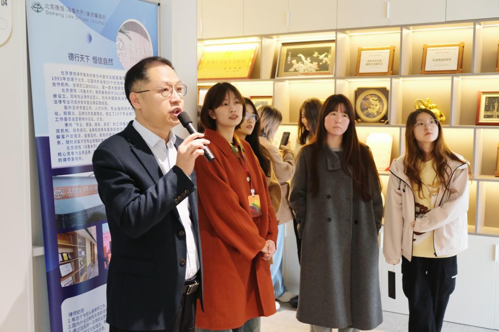 随后,德恒西咸律所执行主任范玉华律师带领乐鱼页面在线登录师生参观了律所的办公环境,如合伙人办公室、西北地区共享办公室、模拟法庭等,以便广大学子可以更加直观地感受律师职业的工作日常和专业氛围。范律师介绍了德恒律师事务所的成立时间、现有机构数量,以及在党建工作和法律服务方面的全面布局和成就。在党建工作方面,他指出德恒律所坚持“分所开在哪里,党支部就建在哪里”的原则,以党建促所建,明确党建在业务发展中的引领作用,荣获“全国先进党组织”的荣誉称号;在法律服务方面,他指出德恒律所服务“一带一路”等国家重要战略项目,为国家发展贡献力量。