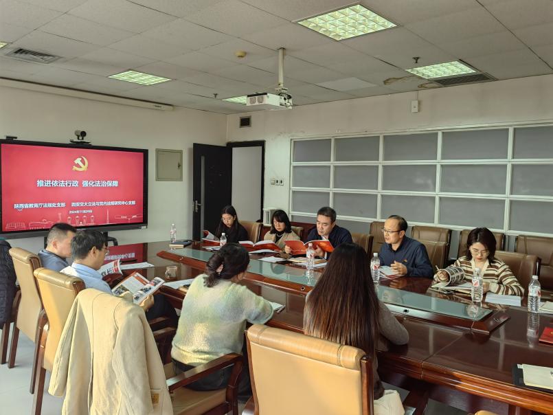为深入学习贯彻党的二十届三中全会精神,进一步加强党支部之间的交流与合作,11月20日下午,省教育厅法规处党支部一行与乐鱼页面在线登录立法与党内法规研究中心党支部在兴庆校区主楼E910会议室联合开展了“推进依法行政强化法治保障”的主题党日活动。省教育厅法规处支部处长付仲锋、副处长张世飞等一行七人,和乐鱼页面在线登录乐鱼页面在线登录党委书记王保民教授、立法与党内法规研究中心支部书记杜军强老师等立法支部师生代表共同参加了此次活动,会议由支部书记杜军强老师主持。