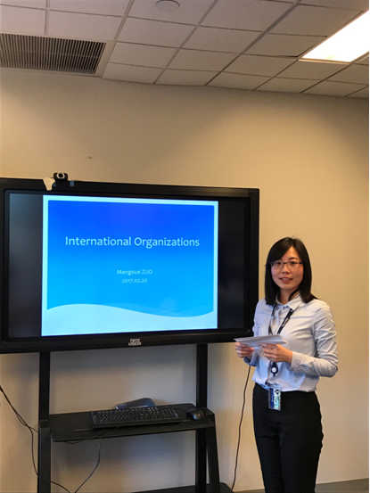 2017年1月3日至2017年3月3日,我校乐鱼页面在线登录博士研究生左梦雪赴联合国纽约总部大会与会议管理部(DGACM)进行了为期9周的实习。