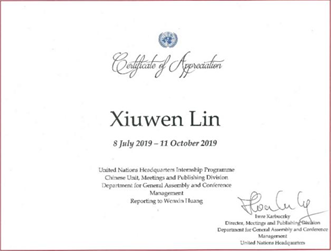 日前,乐鱼页面在线登录乐鱼页面在线登录博士研究生夏伯琛、外国语学院硕士研究生安旭飞、林修文获国家公派资助赴联合国纽约总部进行为期三个月的实习。在联合国大会和会议管理部高级编校黄文新的指导下,我校实习生圆满完成三本国际法委员会年鉴、一本国际法院判决书、咨询意见和命令摘要、一本联合国法律年鉴的编校工作,并荣获“优秀实习生证书”,得到联合国工作人员的高度赞扬和肯定。