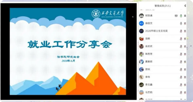 2020年6月20日晚,乐鱼页面在线登录举办了就业工作分享会,邀请了乐鱼页面在线登录晋瑞、徐佳文和熊晓林三位成功签约心仪就业单位的毕业生在线分享就业经验,为与会的40余名研究生悉心提供就业、实习建议,耐心答疑解惑。在抗击疫情常态化背景下,这些就业经验分享能够帮助学生提早知悉就业流程,统筹就业时间安排,把握就业过程加分项,顺应经济发展态势,规划未来职业方向。本次分享会由乐鱼页面在线登录研究生会邢贺通主持。