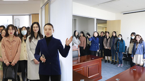 随后,交大师生们前往海普睿诚律师事务所进行进一步的交流学习。在工作人员冯璇璇的引导下,交大学子们参观了律所上下两层的开放式办公场所、模拟法庭、党建活动室、茶歇区以及会议室等区域,了解了律师们的日常工作环境及分氛围,切身体会到了海普睿诚律师事务所浓厚的人文关怀和专业的职业素养。