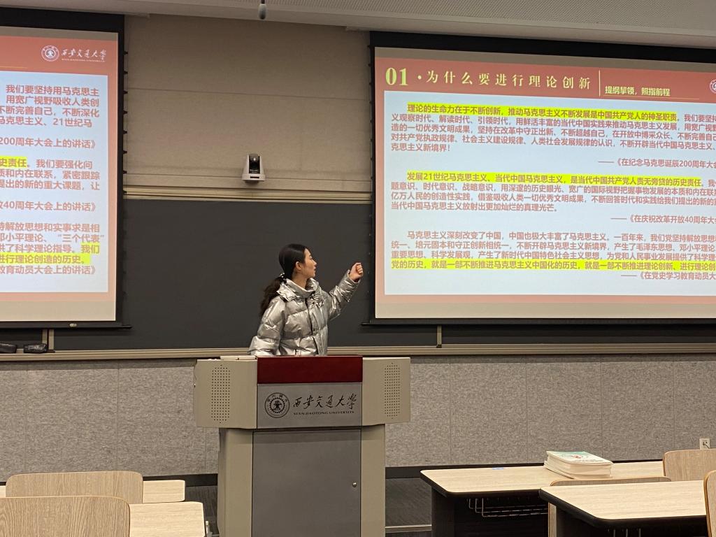 乐鱼页面在线登录学生微宣讲团成员、硕1173班班长张云月作主题为“坚持理论创新,展现马克思主义开放性和时代性”的宣讲。张云月就为什么要进行理论创新这一问题,带领大家学习了习近平总书记关于理论创新的讲话,结合马克思主义的发展史和世界各马克思主义政党实践史对这一问题作出进一步解答,并深入浅出地讲解了马克思主义中国化的三次飞跃。